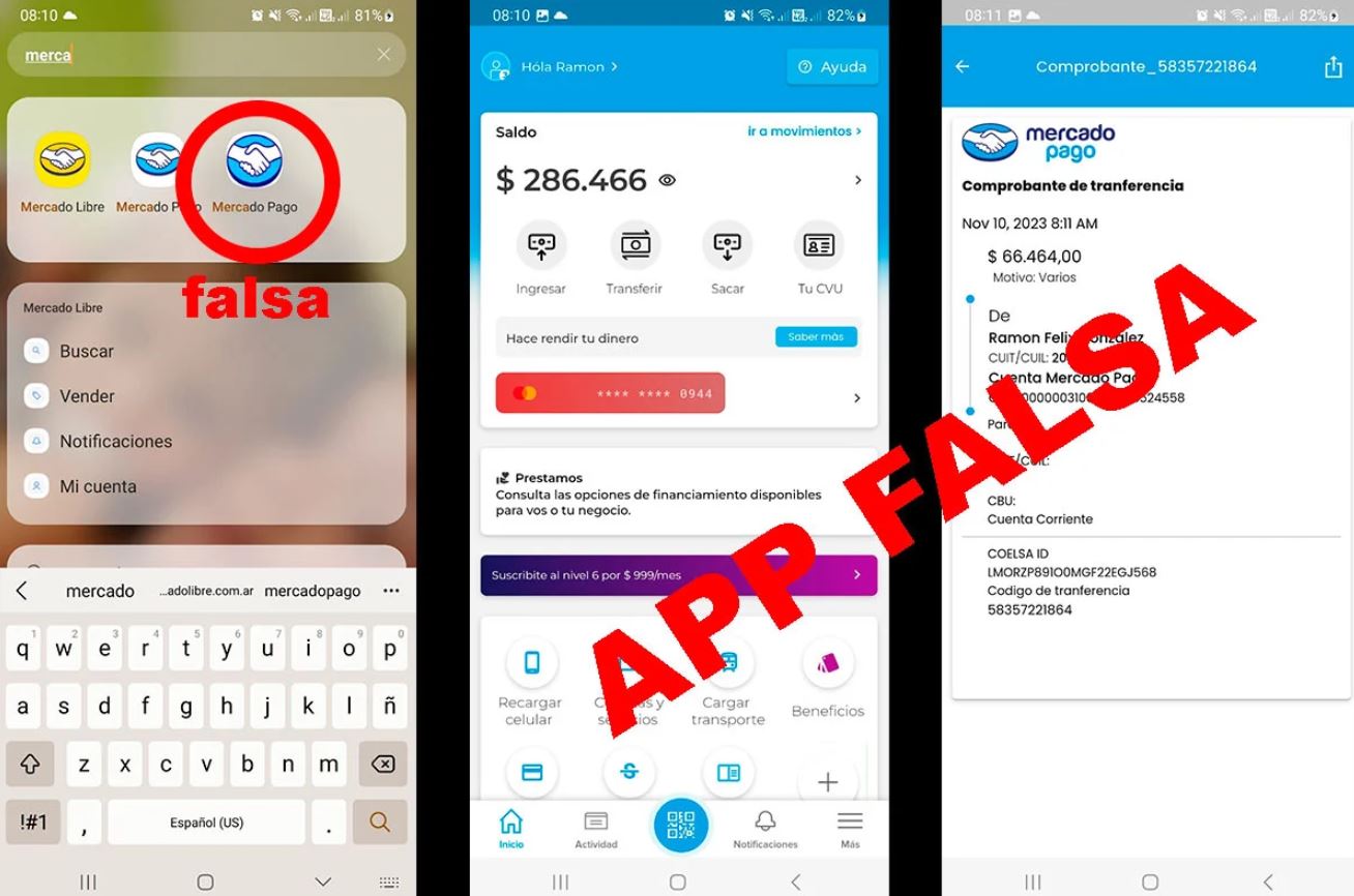 Se trata de una aplicación que simula ser Mercado Pago, Cuenta DNI o alguna de esas y que hace todo el proceso como si se escaneara el código QR o se hiciera una transferencia (genera un comprobante y todo!) pero que en realidad no.