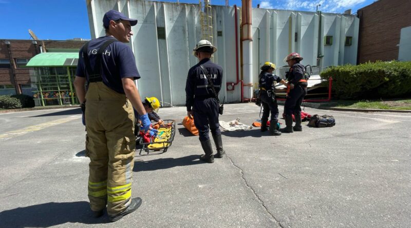BOMBEROS VOLUNTARIOS REALIZÓ UN RESCATE EN ALTURA EN LA PLANTA DE LA DOLCE (EX DRF)
