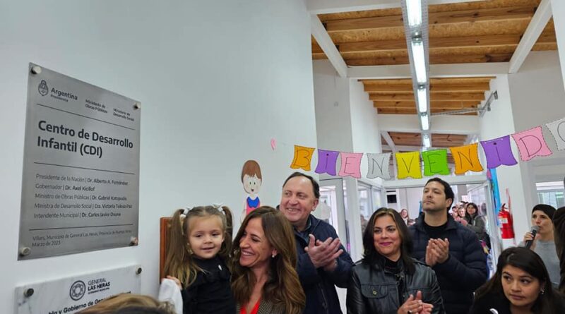 Con la presencia del Ministro de Obras Públicas de la Nación Gabriel Katopodis y la Ministra de Desarrollo Social de Nación Victoria Tolosa Paz, comenzó a funcionar este lunes el Centro de Desarrollo Infantil “Eloísa Castellini” de la localidad de Villars.