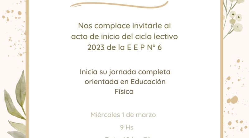 El acto central de comienzo de clases, con presencia de autoridades, se realizará el miércoles a las 9 de la mañana en la escuela primaria Nº6 “José Manuel Estrada” que empezará el ciclo lectivo como Escuela de jornada completa y orientación en Educación Física.