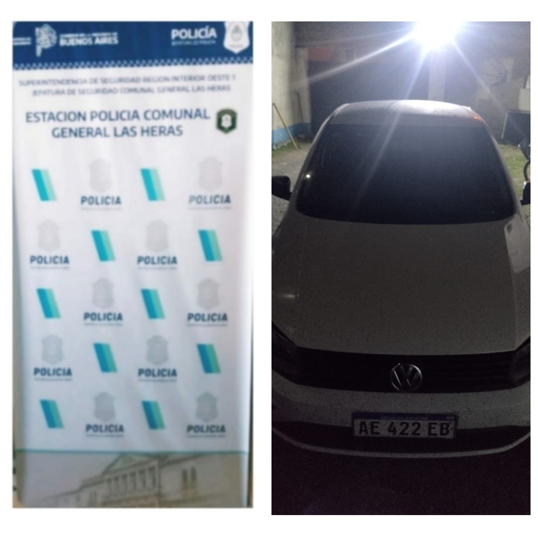 desde la comisaría de Navarro se dio aviso que estas personas se dirigían en sentido hacia General Las Heras a bordo de un auto que habrían usado en un ilícito en Roque Pérez (donde se hicieron pasar por familiares de una persona adulta mayor y le sustrajeron dólares alegando que había que cambiarlos en el banco).