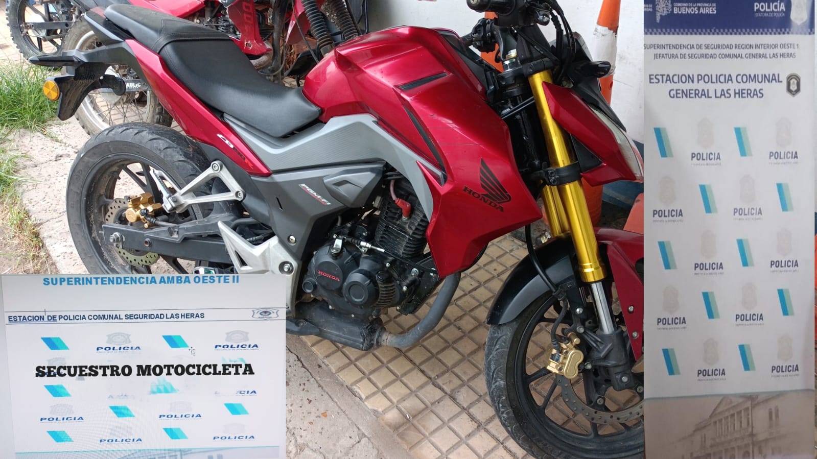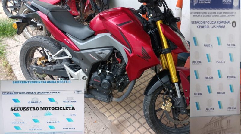 Este jueves, personal de la Estación de Policía Comunal de General Las Heras detuvo a un hombre de 21 años por circular en una motocicleta marca Honda, modelo CB 190R sin chapa patente colocada y que tenía la numeración de motor y cuadro suprimida.