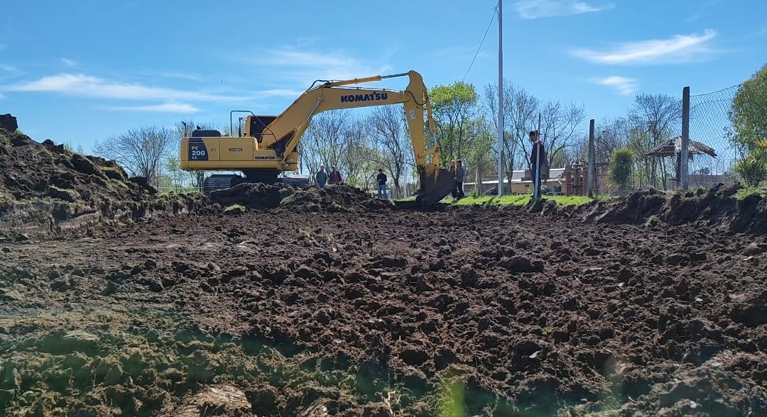 La empresa Vial Días comenzó con el movimiento de suelo que consta de remover una capa de tierra para luego colocar tosca. Más tarde llegará el momento de la colocación del césped y por último las obras complementarias (cordones externos, bancos de suplentes, etc).