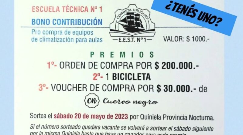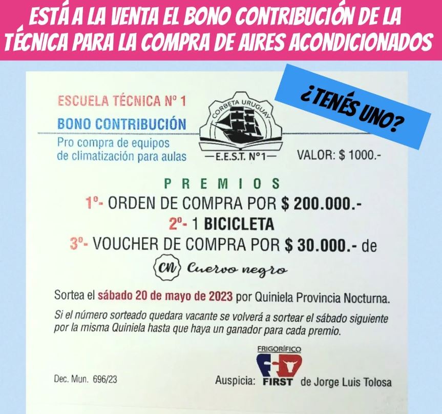 ESTÁ A LA VENTA EL BONO CONTRIBUCIÓN DE LA ESCUELA TÉCNICA PARA LA COMPRA DE AIRES ACONDICIONADOS