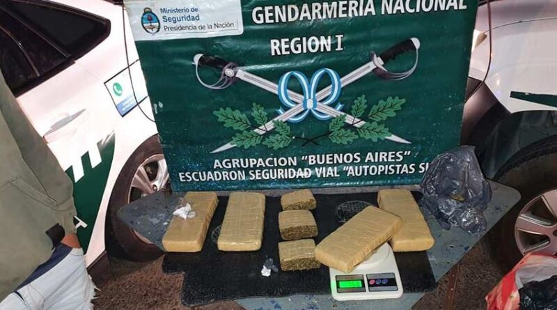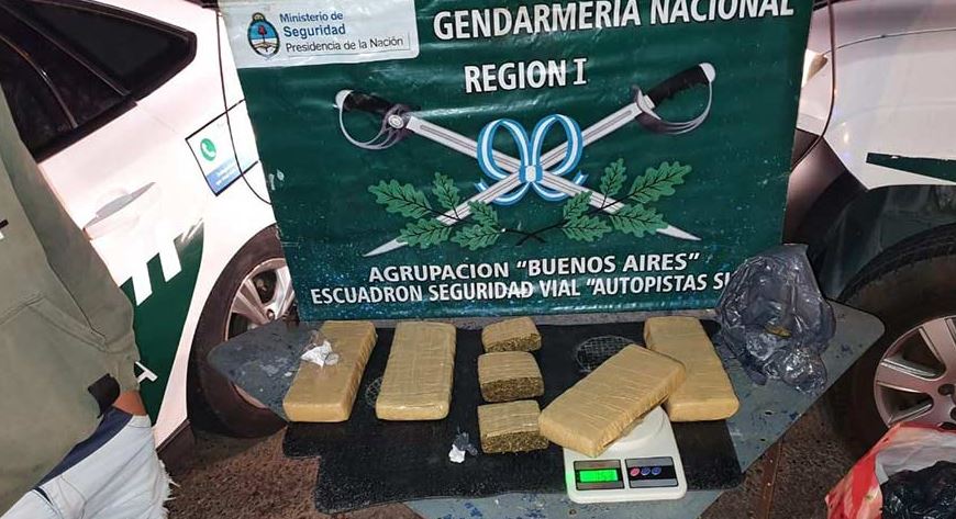 Efectivos de la sección vial Cañuelas de Gendarmería Nacional incautaron 3,5 kilos de marihuana durante un operativo de control realizado el sábado 4 de febrero