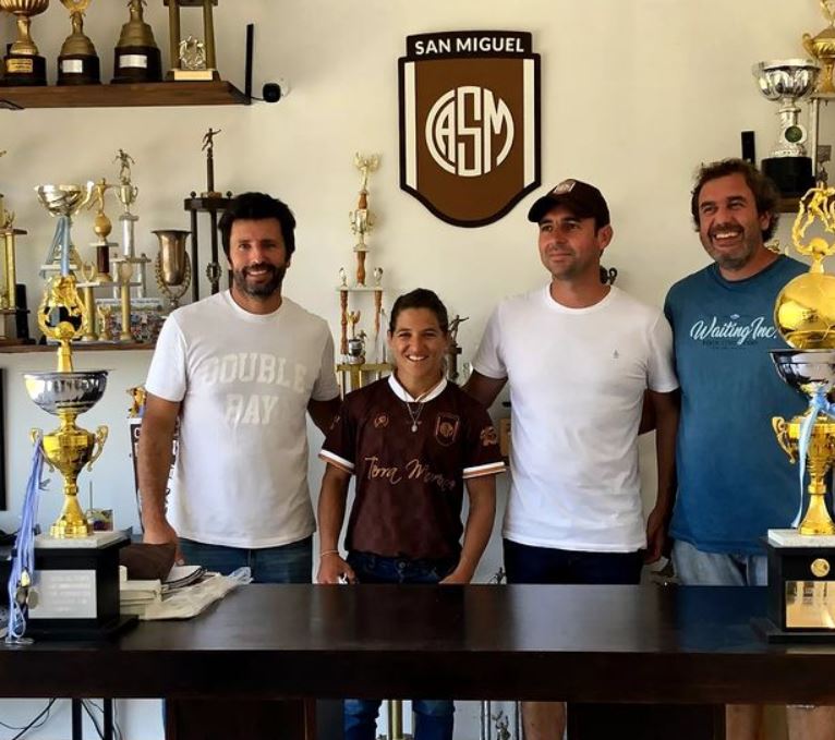 “La Peque” visitó la planta de la empresa “Las Quinas” (con quienes trabaja en proyectos puntuales) y además recorrió el polideportivo Pedro Zamora del Club San Miguel, donde recorrió las instalaciones, recibió una camiseta de fútbol y una de hockey de regalo.