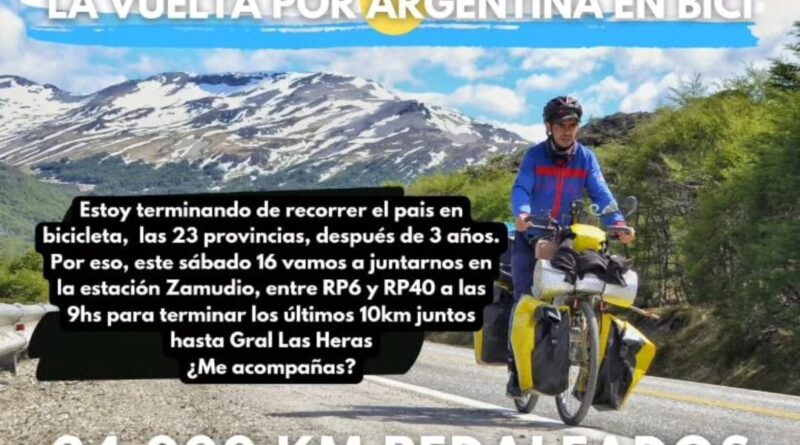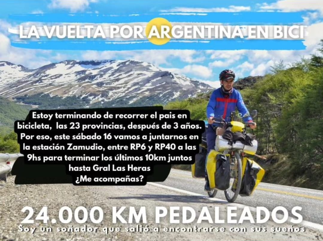 Este sábado 16, Federico Martínez regresará a nuestra ciudad después de hacer más de 24 mil kilómetros en bicicleta y recorrer todo el país .