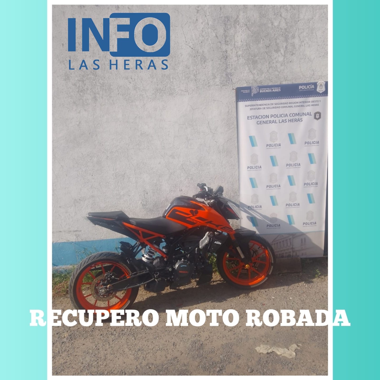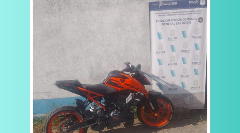 Personal de la Estación de Policía Comunal de Gral. Las Heras recuperó una moto robada en la ciudad de Buenos Aires, detuvo a una persona y otra se dio a la fuga.
