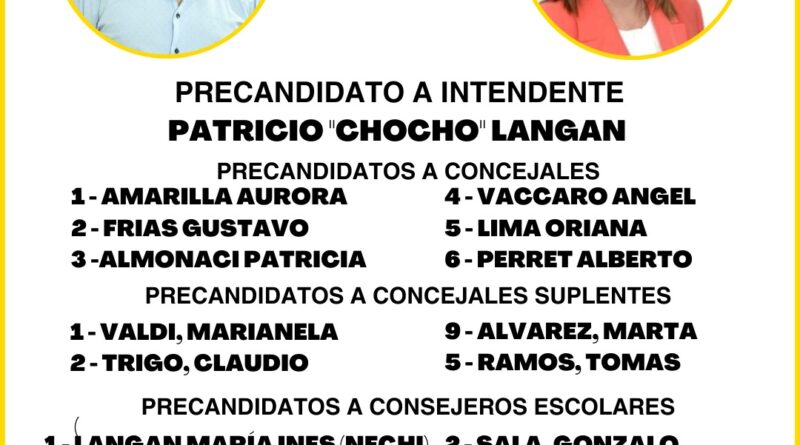 La nómina de precandidatos a concejales la encabeza Aurora Amarilla, seguida por Gustavo Frias, Patricia Almonaci, Ángel Vaccaro, Oriana Lima y Alberto Perret.