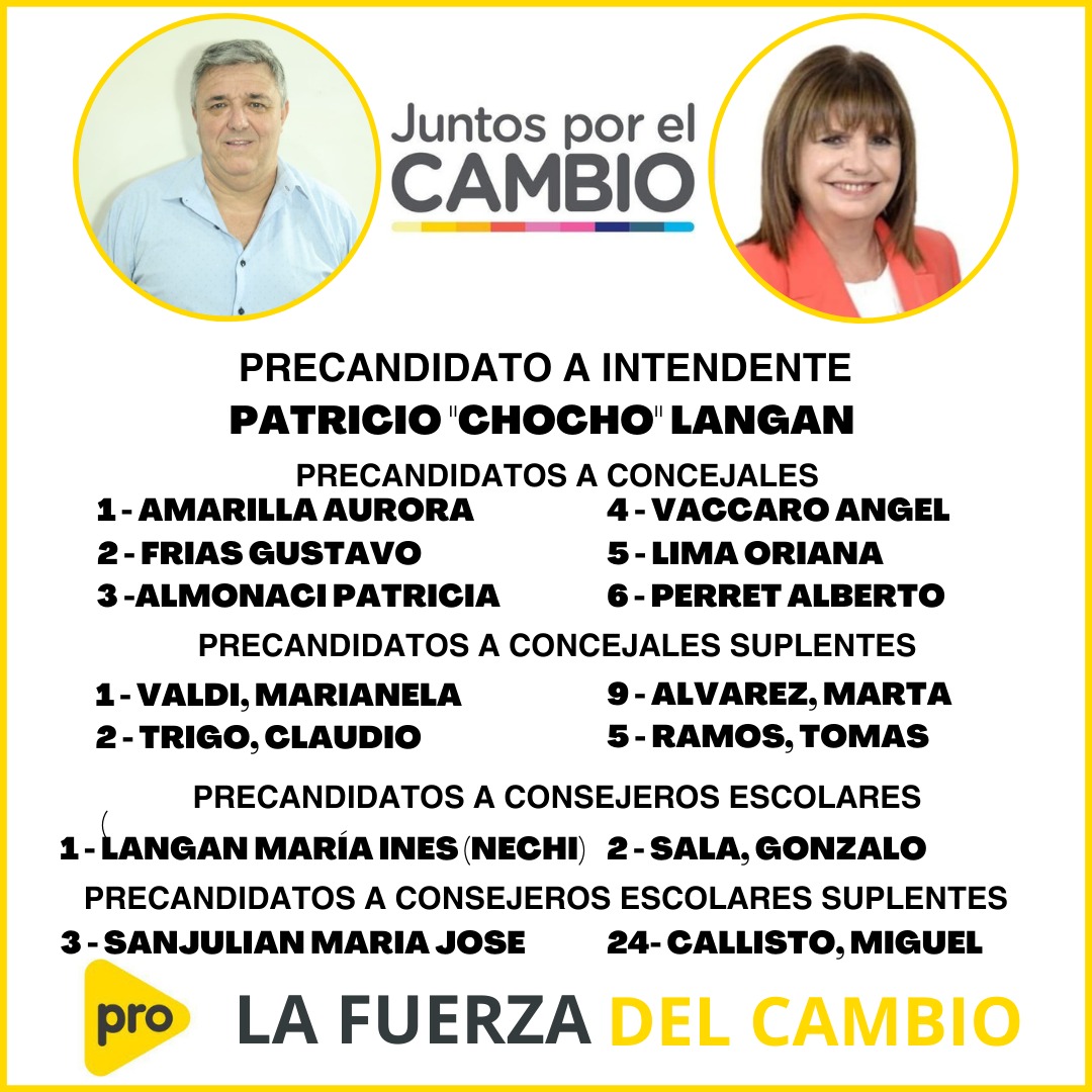 Ayer confirmamos las listas de Pablo Valerga y Guillermo Arozarena, hoy lunes podemos hacer lo propio con Patricio Langan, quien también llevará a Patricia Bullrich como precandidata a Presidenta.