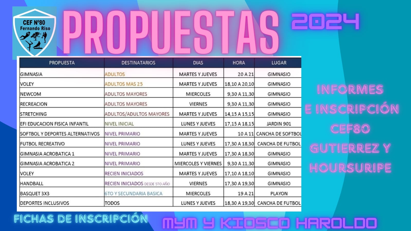 PROPUESTAS DEL CEF Nº 80 “FERNANDO RISO”