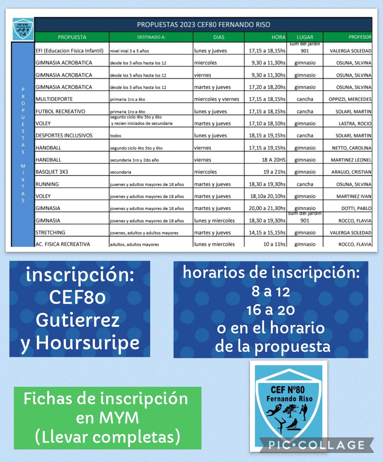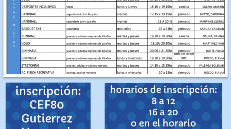 El Centro de Educaciòn Física Nº80 “Fernando Riso” dio a conocer la lista de actividades para este ciclo lectivo 2023.