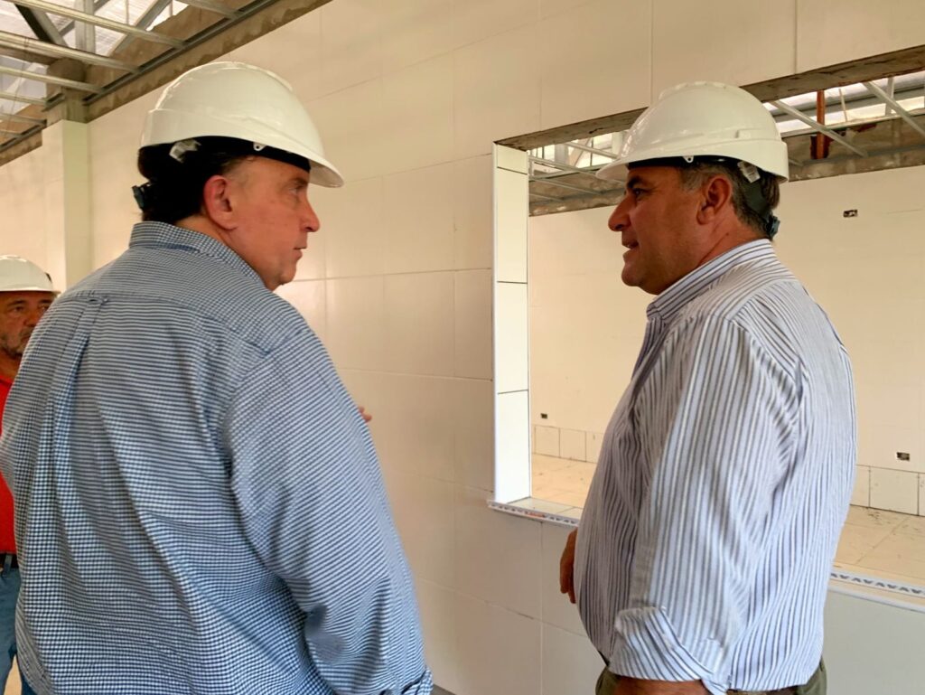 En el mediodía de ayer, el Intendente Javier Osuna junto al Presidente del Honorable Concejo Deliberante Marcelo Sartori y parte del gabinete municipal recorrieron las obras de reconstrucción de la planta de Cabaña Argentina.