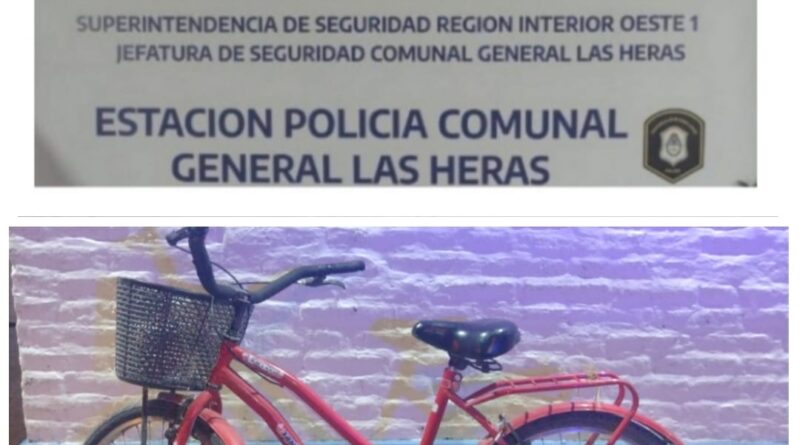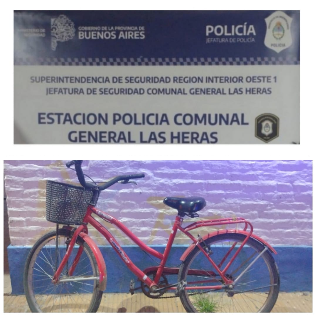 Personal de la Estación de Policía Comunal de General Las Heras recuperó esta mañana una bicicleta playera que había sido robada la madrugada anterior de una vivienda de la calle Hoursouripe al 400.