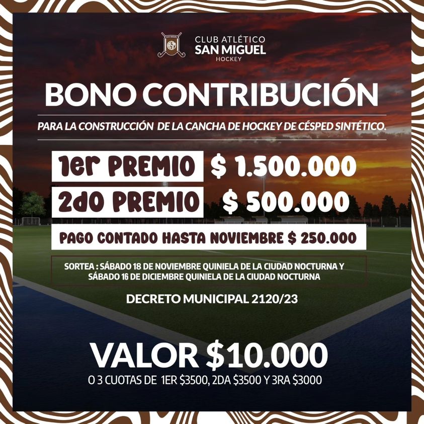 “El marrón” lanzó el bono contribución para la construcción de la cancha de hockey de césped sintético.
