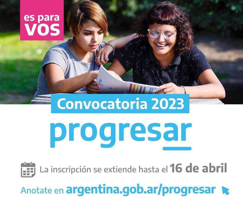 Hasta el 16 de abril se extiende la primera inscripción 2023 para Progresar en todas sus líneas de beca: Obligatorio (incluye Línea 16 y 17), Superior, Enfermería y Trabajo.