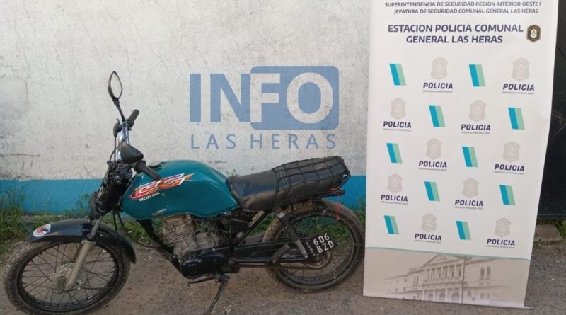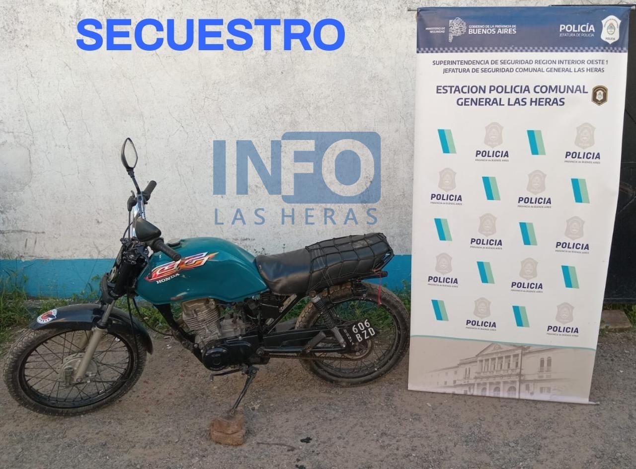Finalmente en la intersección de calles Sarmiento y Dorrego logra ser interceptado y aprehendido. Se secuestra una moto marca Honda, modelo CG, de color verde con numeración de cuadro adulterada.