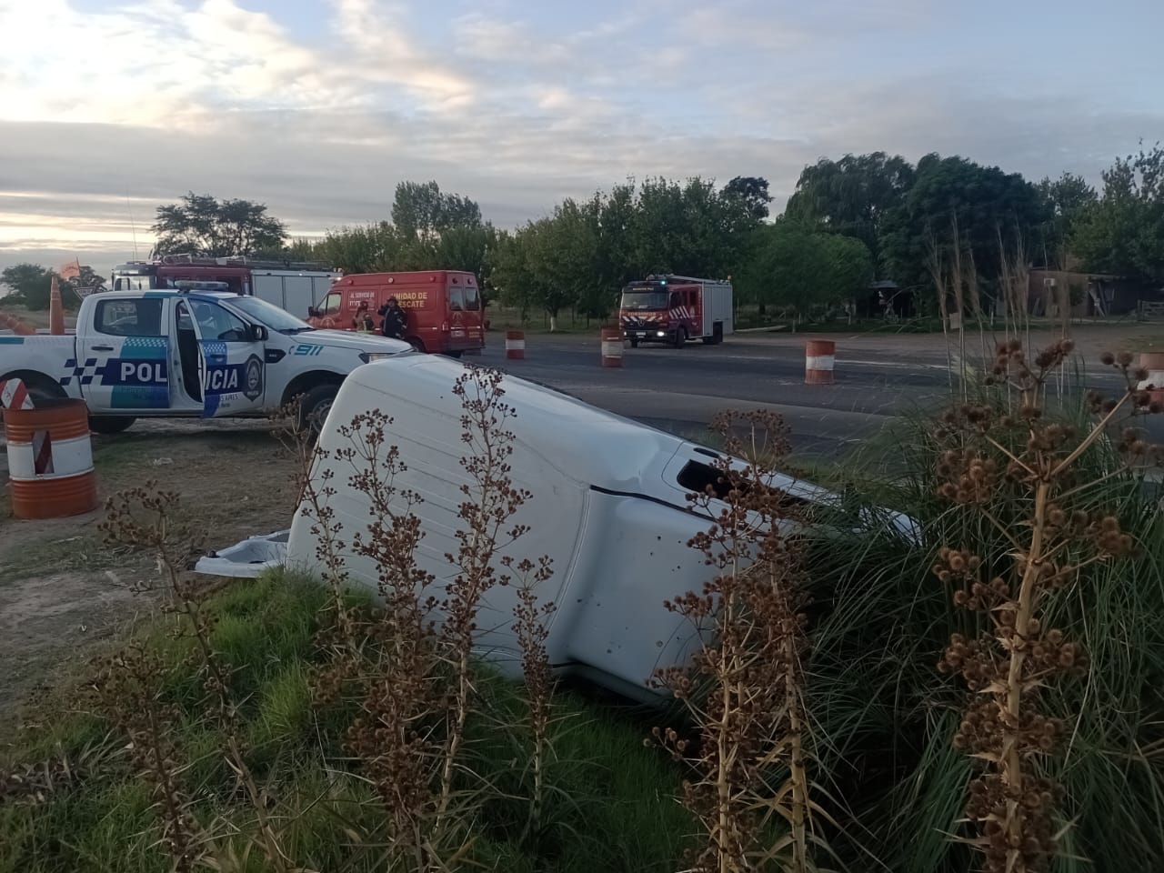 Una camioneta Fiat Fiorino se despistó y terminó sobre uno de sus laterales esta mañana, minutos después de las 6 y 15 horas, en el KM. 103 de la ruta 6, donde hay uno de los desvíos por la obra.